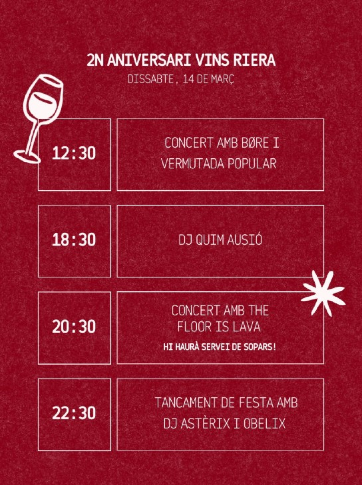 📢 2n ANIVERSARI VINS RIERA · 14 de març 🍷