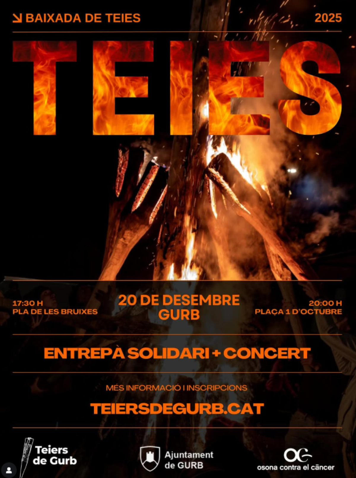 " /> www.teiersdegurb.catLa Baixada de Teies de Gurb és una iniciativa que va néixer l’any 2011 amb l’objectiu de recuperar el foc com a element simbòlic i ancestral de la nostra cultura. Aquesta tradició ens permet celebrar el solstici d’hivern i les festes de Nadal, alhora que esdevé un espai de trobada per compartir moments únics amb tota la comunitat.