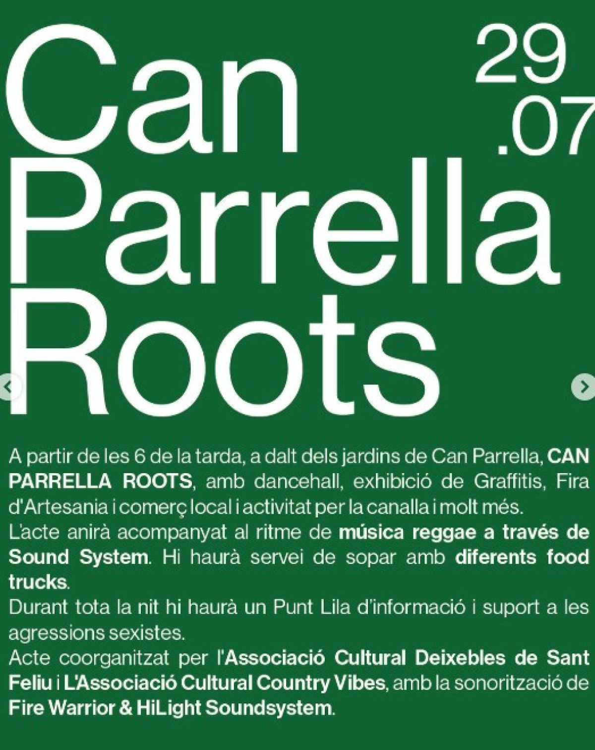 Amb dancehall, exhibició de graffitis, fira d’artesania i comerç local, activitats per la canalla i molt més. L’acte anirà acompanyat al ritme del Sound System i música reggae