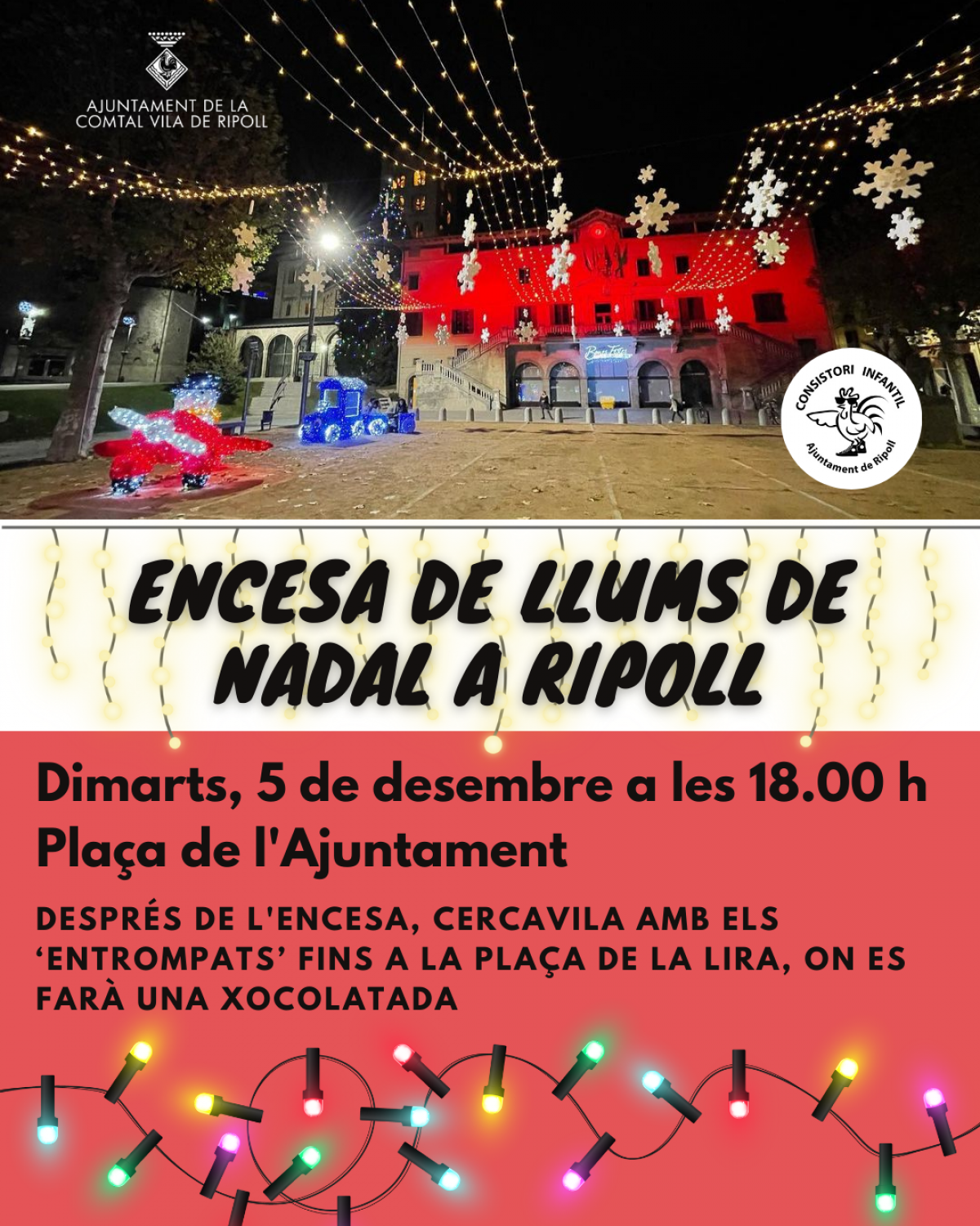 Després de l'encesa, cercavila amb els Entrompats fins a la plaça de la Lira on es farà una xocolatada.