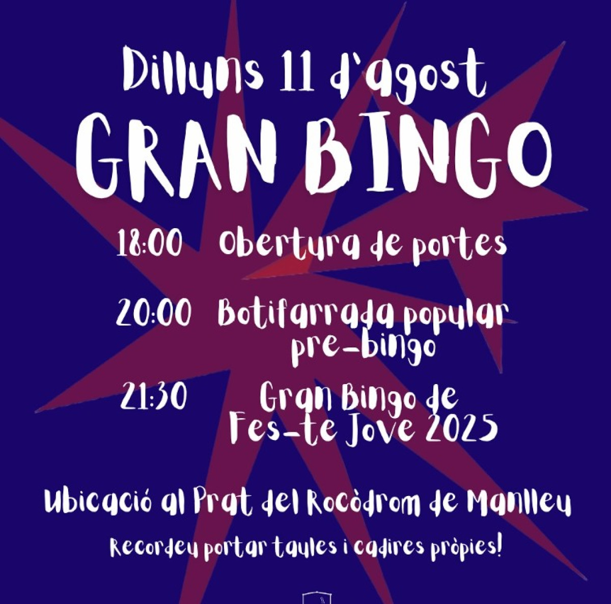 Us presentem el GRAN BINGO de #FesteJove25, un dels actes més esperats de la festa auto-organitzada del jovent de #Manlleu! 🙌🏾