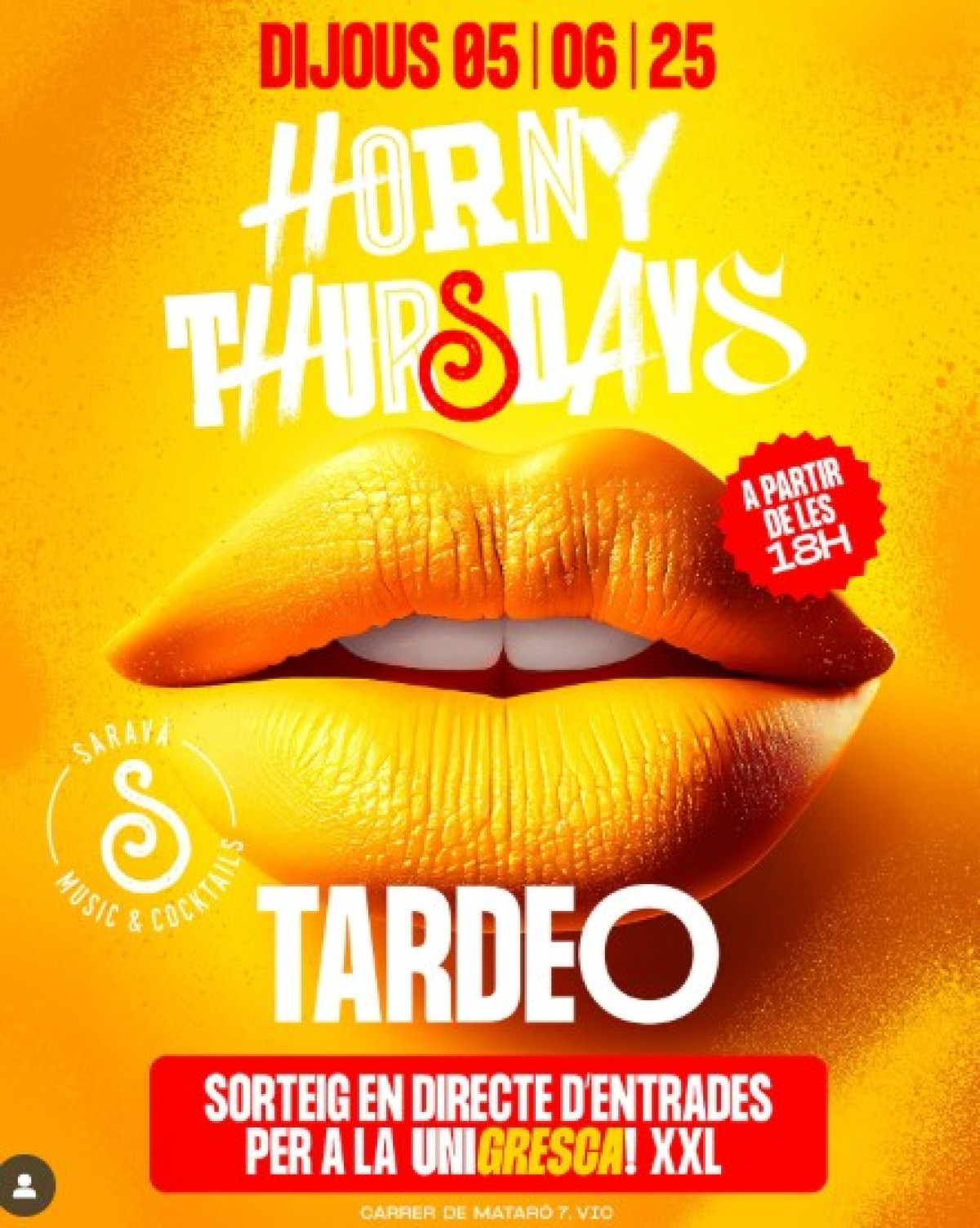 Aquest dijous al Saravà tenim TARDEO a partir de les 18h 🕕 i és super fàcil! 😏👇