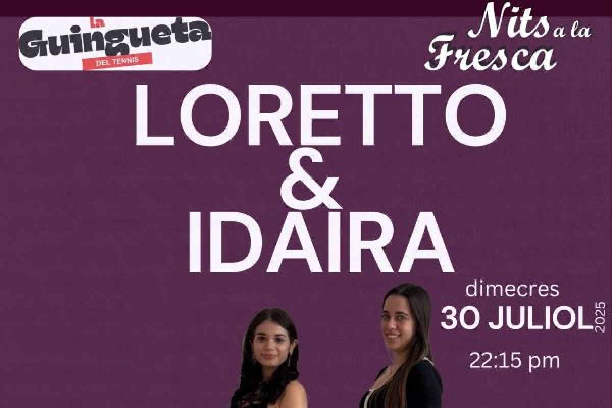 En el marc del programa Nits a la Fresca, de la Guingueta del Tennis, aquest dimecres hi ha l'actuació de "Loretto i Idaira", un duet de cantants amb veus diferents. Ofereixen una actuació amb un repertori ampli i variat que inclou estils com el pop,balades,clàssics,bluss,jazz...