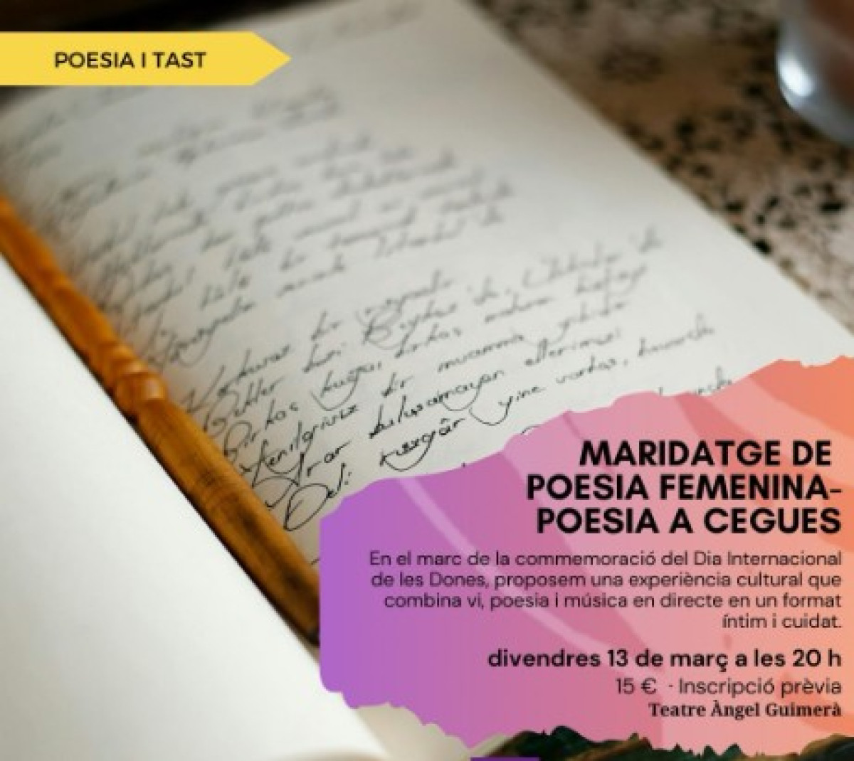 Comprar entradesEn el marc del Dia Internacional de les Dones, et proposem una experiència cultural que combina vins elaborats per dones, poesia i piano en directe. Una vetllada per celebrar i posar en valor el talent femení des dels sentits.