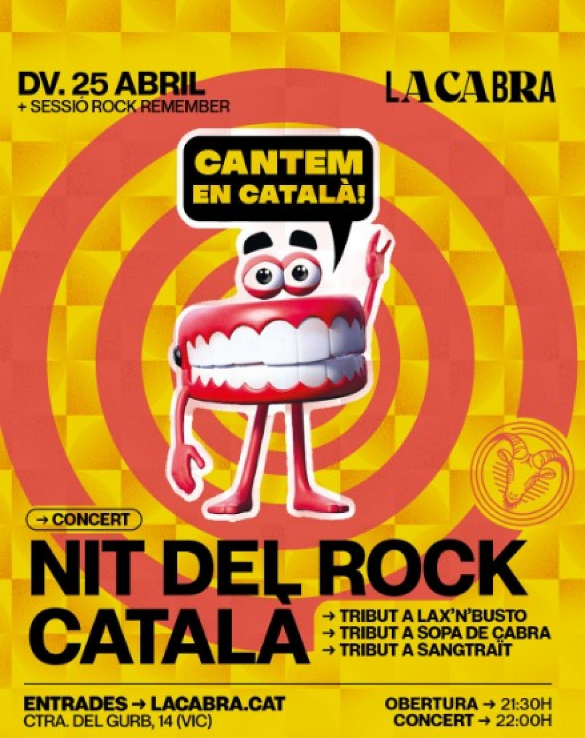 Torna la Nit del Rock Català!!! 🎸🙌🏻 Amb els millors tributs de Lax’n’Busto (Rock’n’Busto), Sopa de Cabra (Malparits) i Sangtraït (Els Senyors de les Pedres), farem un gran homenatge a aquestes tres bandes!!! Un any més, venen per fer-nos recordar tots els hits que ens van acompanyar als 90’s✨, i que van marcar la història del rock en català! ❤️