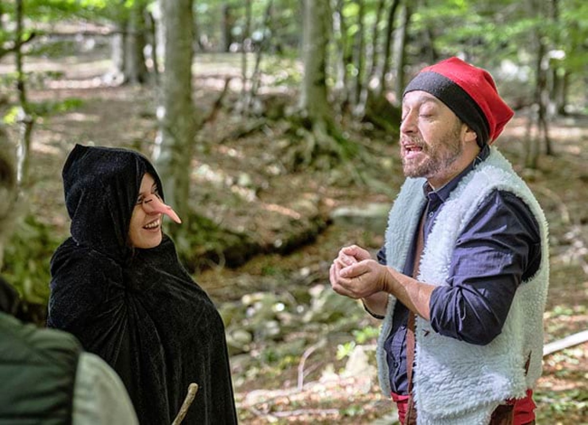 Aigua, un viatge pels sentits és un itinerari inclusiu i teatralitzat que es realitza al llarg del recorregut adaptat de la font del Frare, vorejant la riera de Santa Fe, al Parc Natural del Montseny. Reserva de la Biosfera. De la mà de personatges singulars, els participants faran un viatge a través dels sentits, les sensacions i les emocions. Es tracta d'una iniciativa plantejada per acollir a tothom: persones grans i petites, amb dificultats de mobilitat o amb alguna discapacitat sensorial, intel·lectual o física. Foto: Oriol Clavera