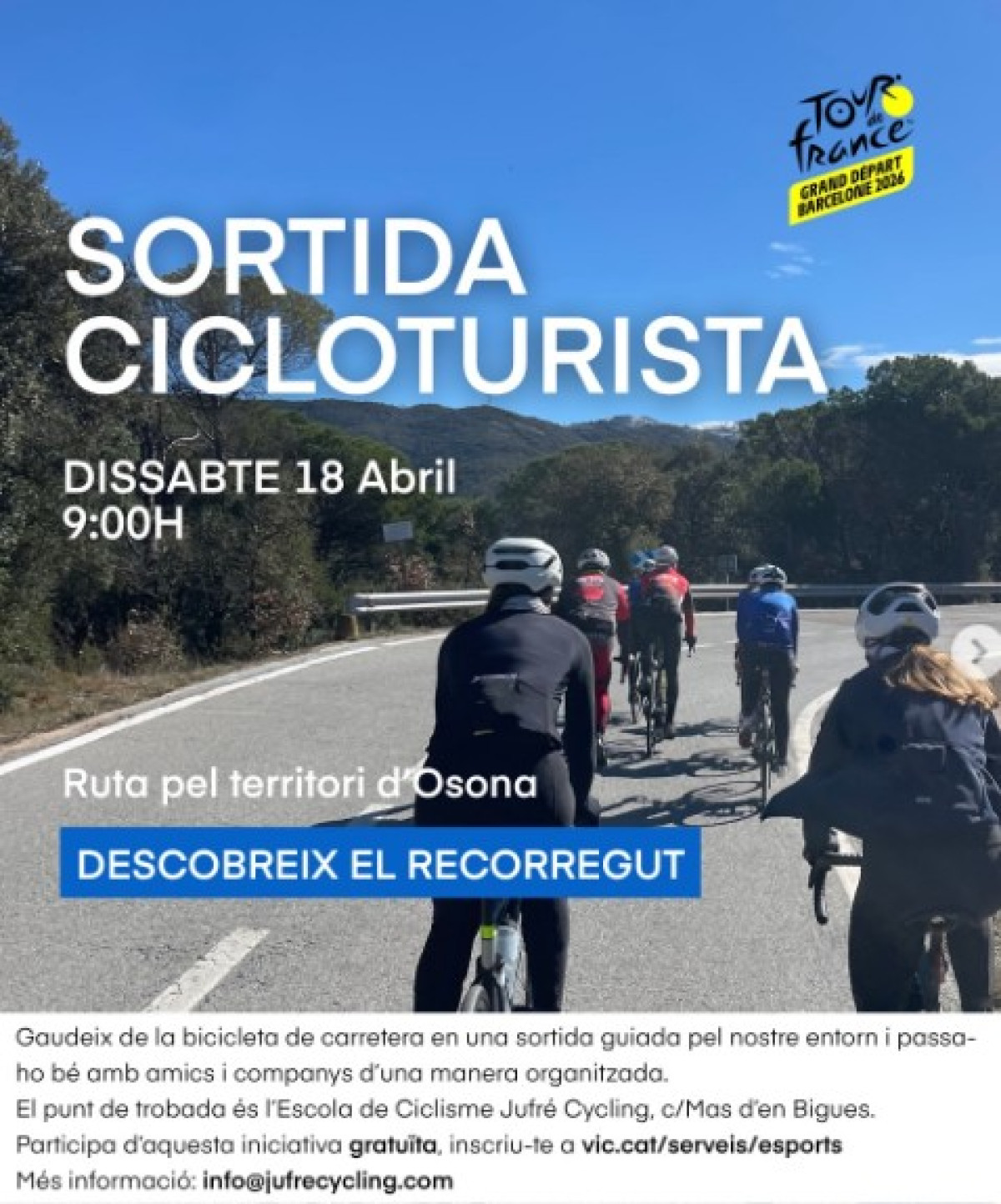 🤝 Una iniciativa gratuïta en col·laboració amb Ajuntament de Vic dins les activitats vinculades al pas del Tour de France 2026 pel nostre territori.