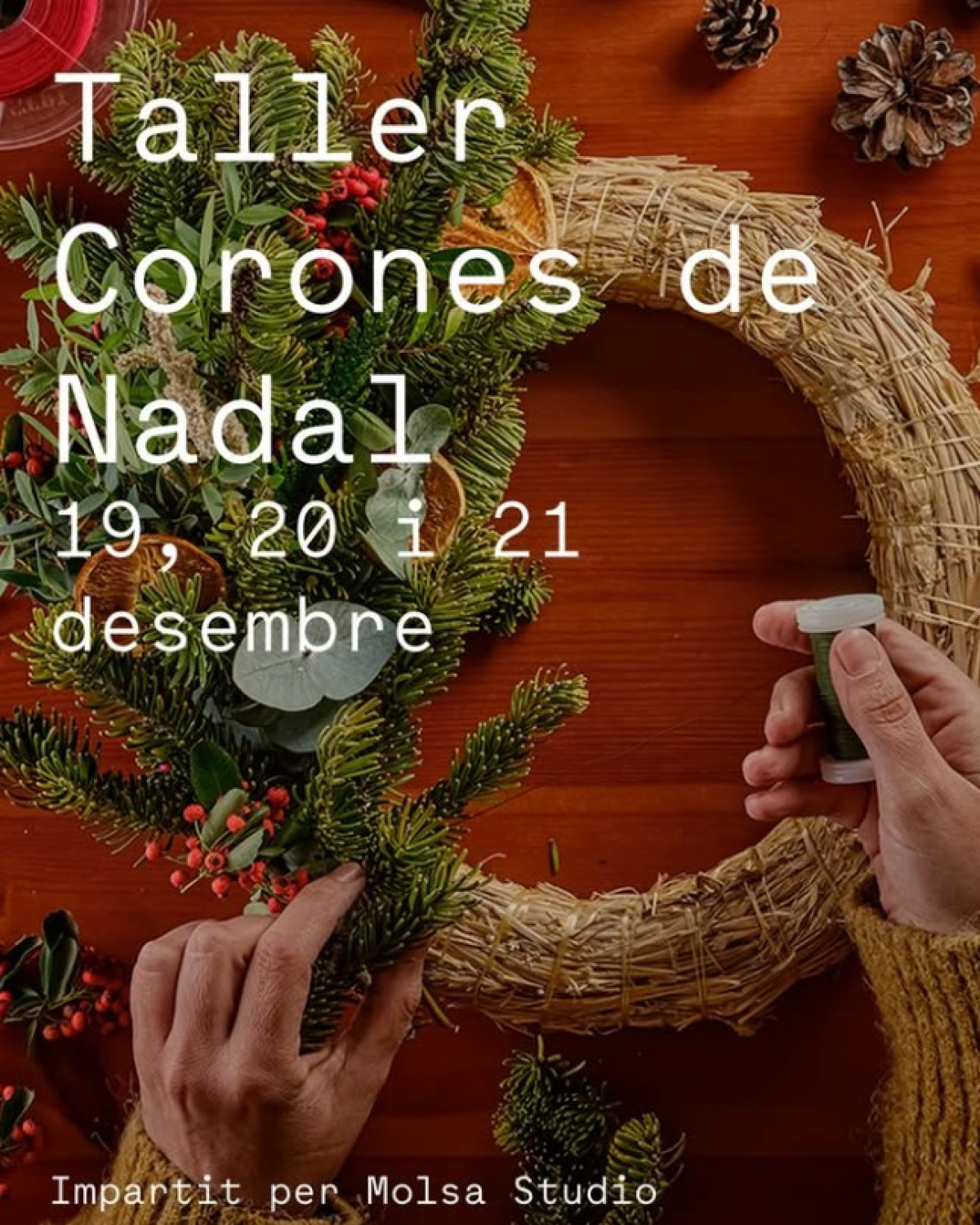 Taller floral per a aduls a càrrec de Molsa. Elaborarem una corona de Nadal silvestre amb materials naturals i aprendrem la tècnica per crear aquesta peça decorativa al nostre gust.