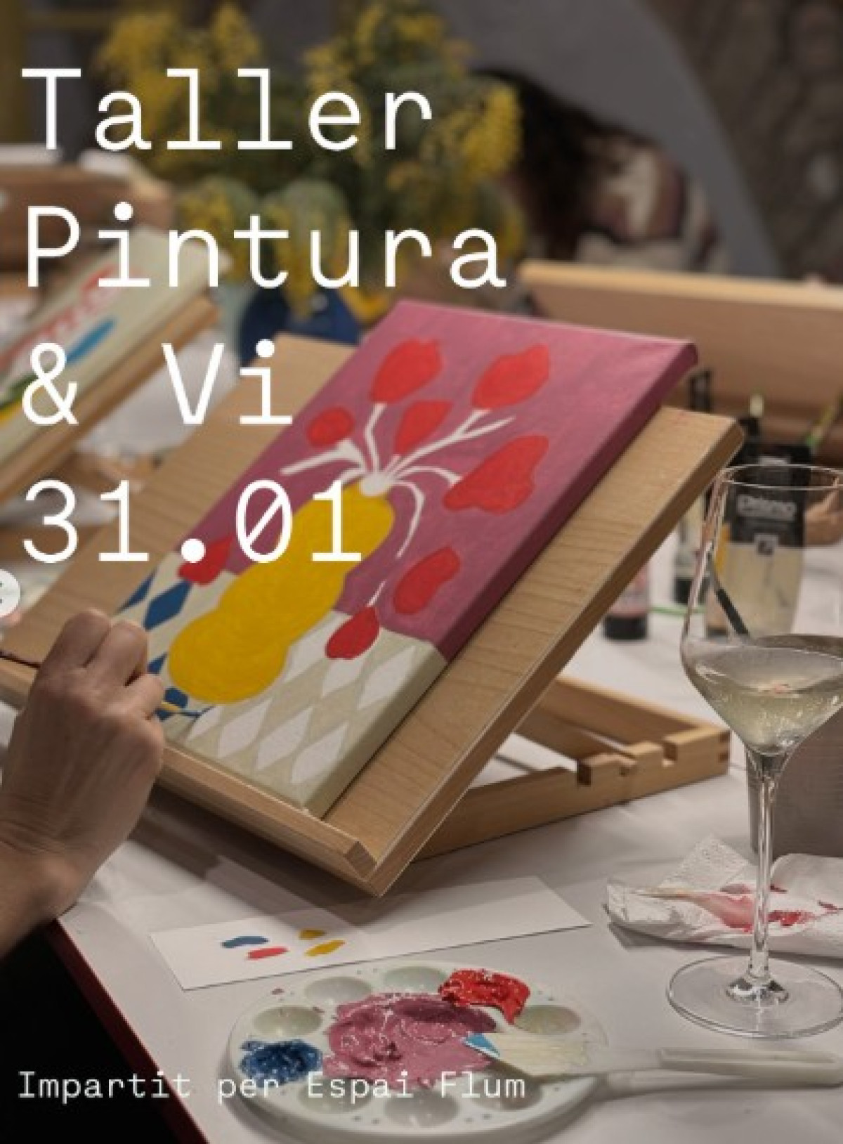 No fa falta coneixaments per apuntar-se a aquest taller depintura, només ganes de gaudir a través de l'Art! Regala't una estona de pausa i creativitat per a tu, on pintaràs un quadre guiat per la tallerista que t'acompanyarà en el procés. També pots portar la teva pròpia idea!